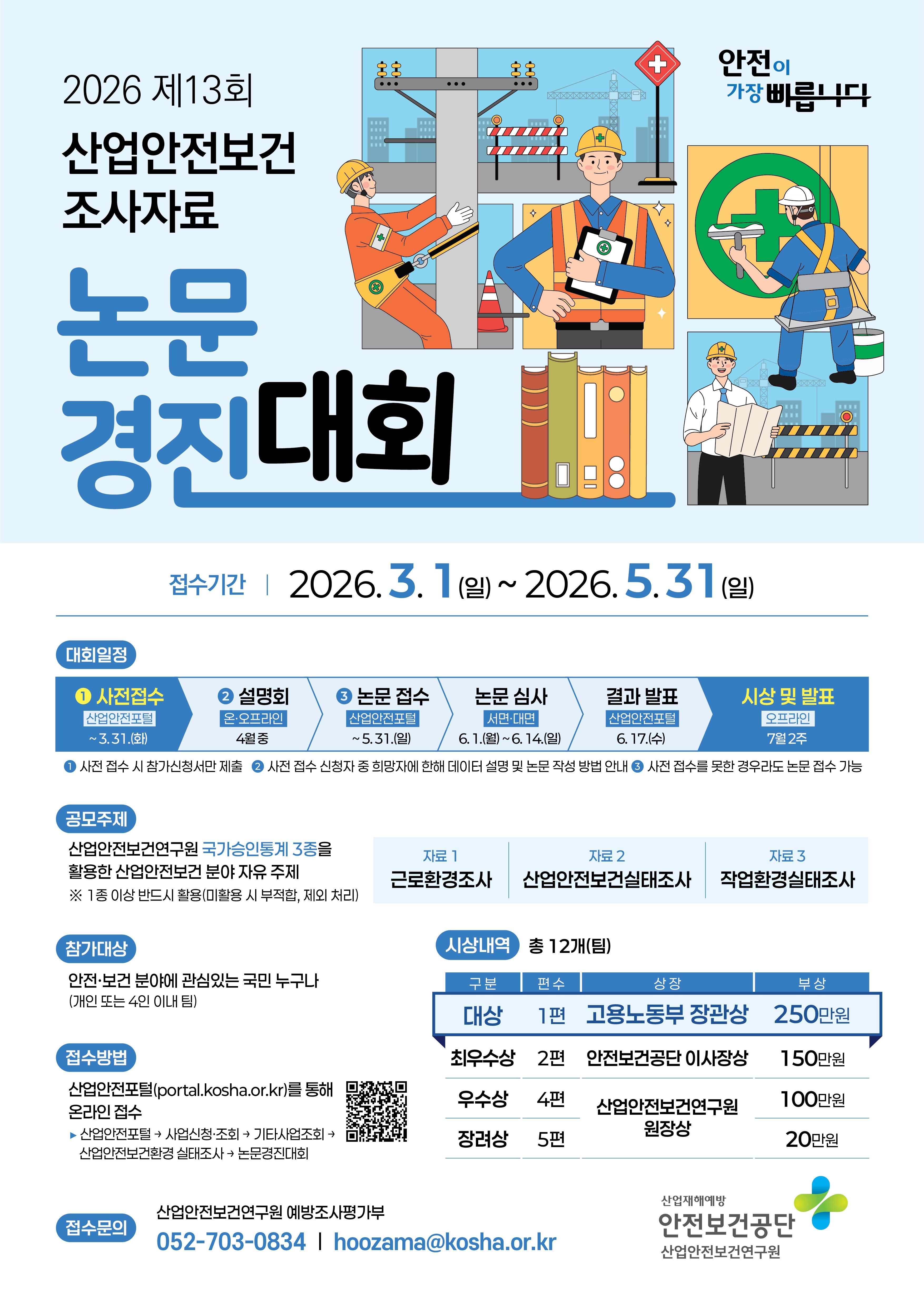 [공모] 2026 제13회 산업안전보건 조사자료 논문경진대회(~5/31까지)