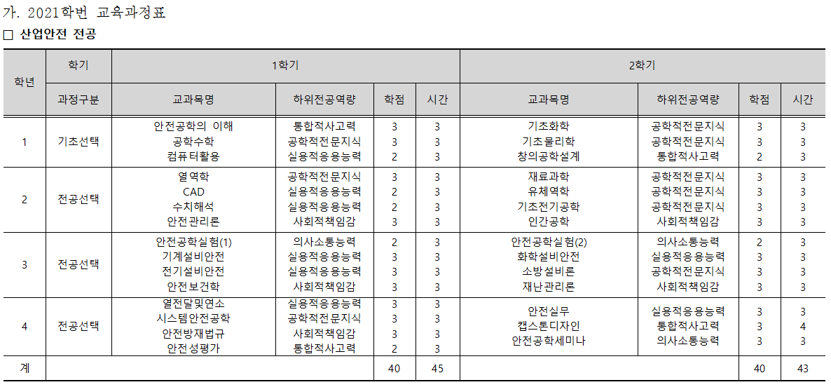 HOME > 교육과정 > 교육과정 교육과정소개교육과정체계 전공 소개 교과목소개 교육과정 □ 교육과정 2025학년도 교육과정표 2024학년도 교육과정표 2023학년도 교육과정표 2022학년도 교육과정표 2021학년도 교육과정표 2020학년도 교육과정표 2019학년도 교육과정표